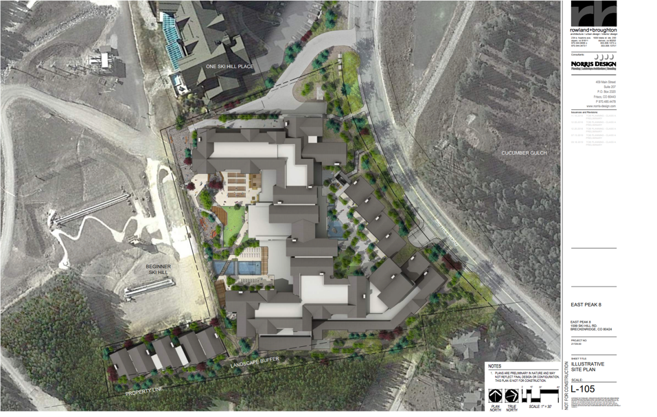 The current site of the Administration building for the Breckenridge Ski Resort was sold to a developer. This is the property directly next to One Ski Hill Place (OSHP). The developer received approvals from the planning board to build the East Peak 8 Hotel (with approximately 47 condos). The property, once built, will be managed by Rock Resorts. It is rumored that it will be a Four Seasons Resort. Due to various community concerns the Town Council called a "de novo hearing". A de nova hearing, in this instance, is a hearing in which the Town Council, as the decision-making authority deals completely afresh with a matter that has already been heard once before by the planning board.