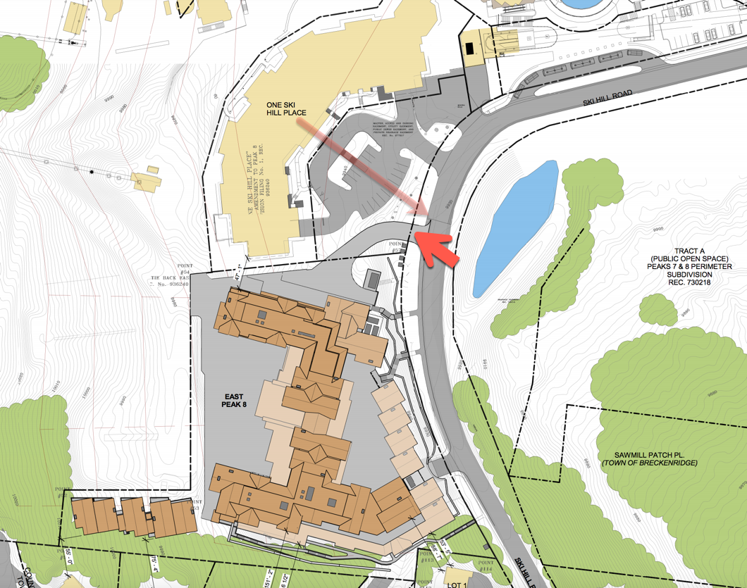 Our HOA Board, without surveying all the residential owners, gave their support of the project, although its service entrance remained in front of OSHP (see images below). The land the service entrance is on is owned by Vail Resorts. Vail Resorts gave the EP8 developer an easement to use this land (without even a courtesy notice to OSHP). We believe that this service entrance infringes OSHP's front elevation and will bring unsightly trucks, noise and odors to OSHP.